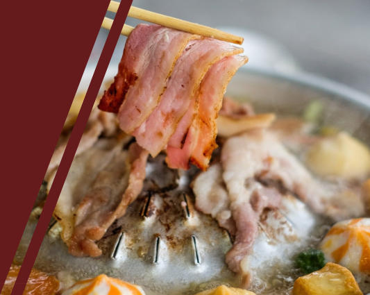 人群的著名烧烤和火锅,烤五花肉、泰式大蒜猪肉片总是